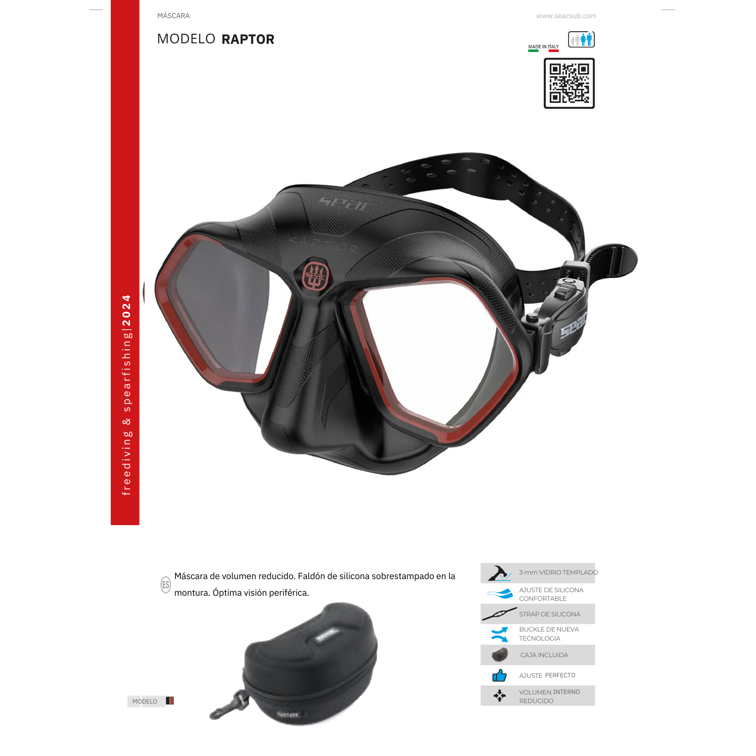 Seac Eagle se vende junto con un práctico estuche semirrígido con mosquetón para guardar la máscara después de su uso.